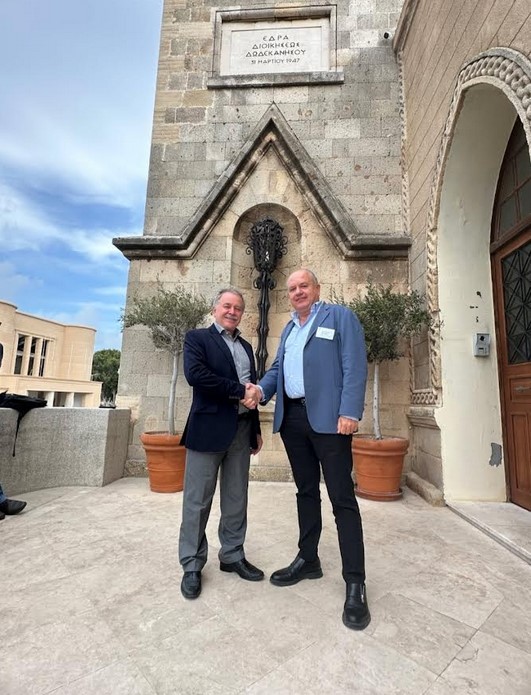 Η συνάντηση πραγματοποιήθηκε στο πλαίσιο της παρουσίασης του έργου “ΝΗΣΟΣ”, ενός πρωτοποριακού προγράμματος για την πράσινη και ψηφιακή μετάβαση των νησιών του Αιγαίου, το οποίο συντονίζει ο Δρ. Μπεκιάρης. Στη συζήτηση συμμετείχαν επίσης η Πρόεδρος του ΤΕΕ Δωδεκανήσου, κα Μαίρη Παπανδρέου, και ο Τεχνικός Σύμβουλος, κ. Ιάκωβος Γρύλλης.