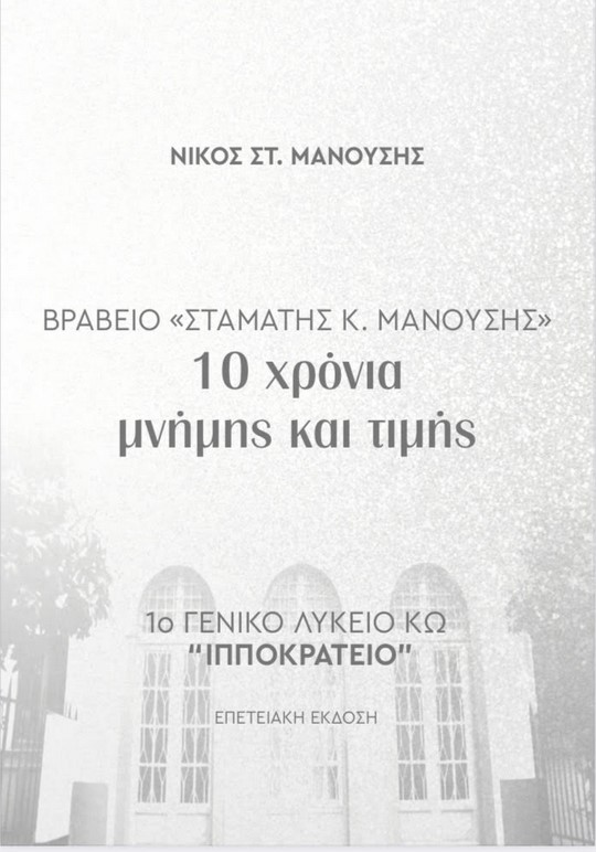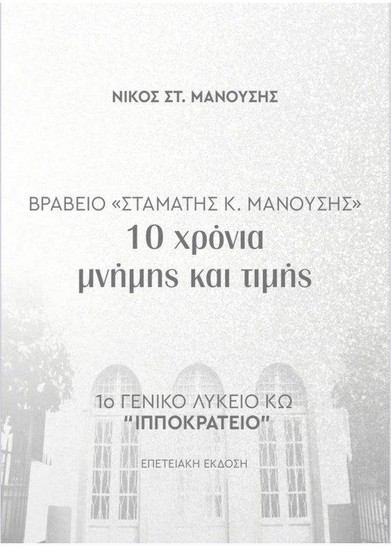 Με αφορμή τη φετινή επέτειο, παρουσιάστηκε και το επετειακό λεύκωμα “10 Χρόνια Τιμής και Μνήμης”, που περιλαμβάνει το χρονικό του θεσμού, τις τοποθετήσεις του Μητροπολίτη Κώου και Νισύρου κ. Ναθαναήλ, της Επάρχου Κωνσταντίνας Σβύνου και των διευθυντών του Λυκείου, καθώς και σύντομο ιστορικό του Ιπποκρατείου Γυμνασίου–Λυκείου Κω, όπου ο Σταμάτης Μανούσης υπήρξε μαθητής της πρώτης τάξης το 1918. Επίσης όλες τις βραβεύσεις και τους χαιρετισμούς των αριστούχων.