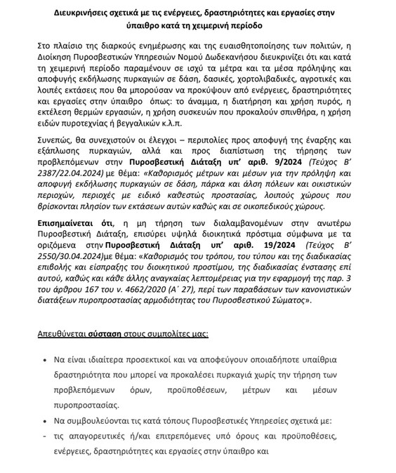 Εν Δωδεκανήσω Σύσταση της ΠΥ Κω για δραστηριότητες στην ύπαιθρο με κίνδυνο πυρκαγιάς κατά...