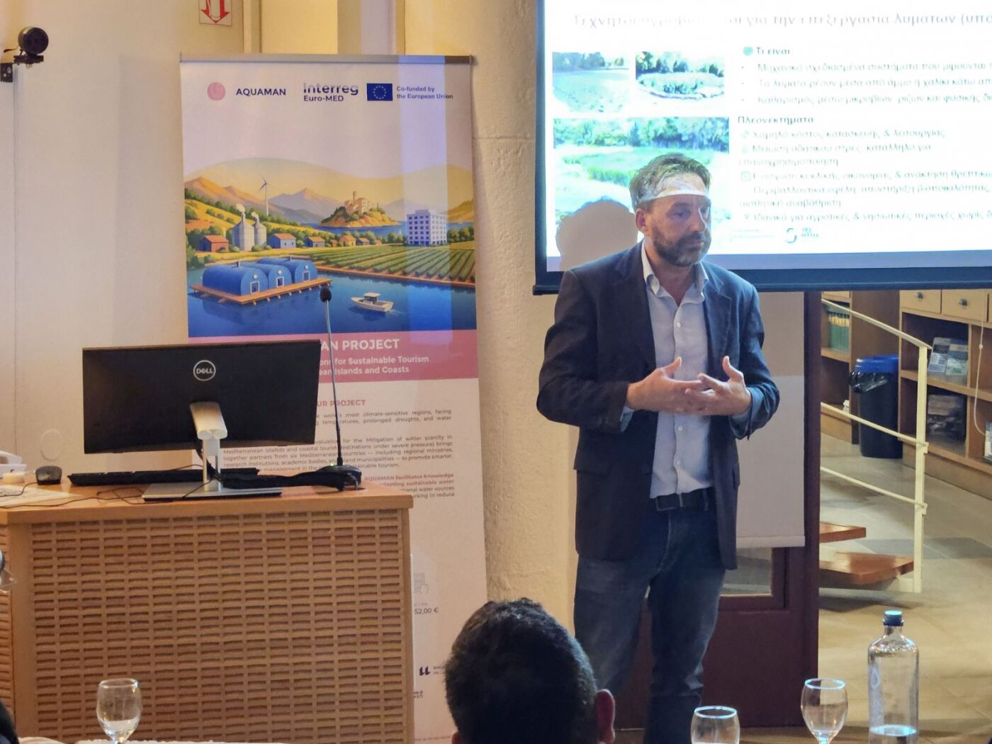 Το έργο AQUAMAN (AQUAtic systems’ evaluation for the Mitigation of wAter scarcity in Mediterranean islaNds and coastal tourist destinations under severe pressure) επικεντρώνεται στην αντιμετώπιση της λειψυδρίας σε νησιωτικές και παράκτιες τουριστικές περιοχές, που δοκιμάζονται έντονα από την κλιματική αλλαγή και τον αυξημένο τουρισμό.