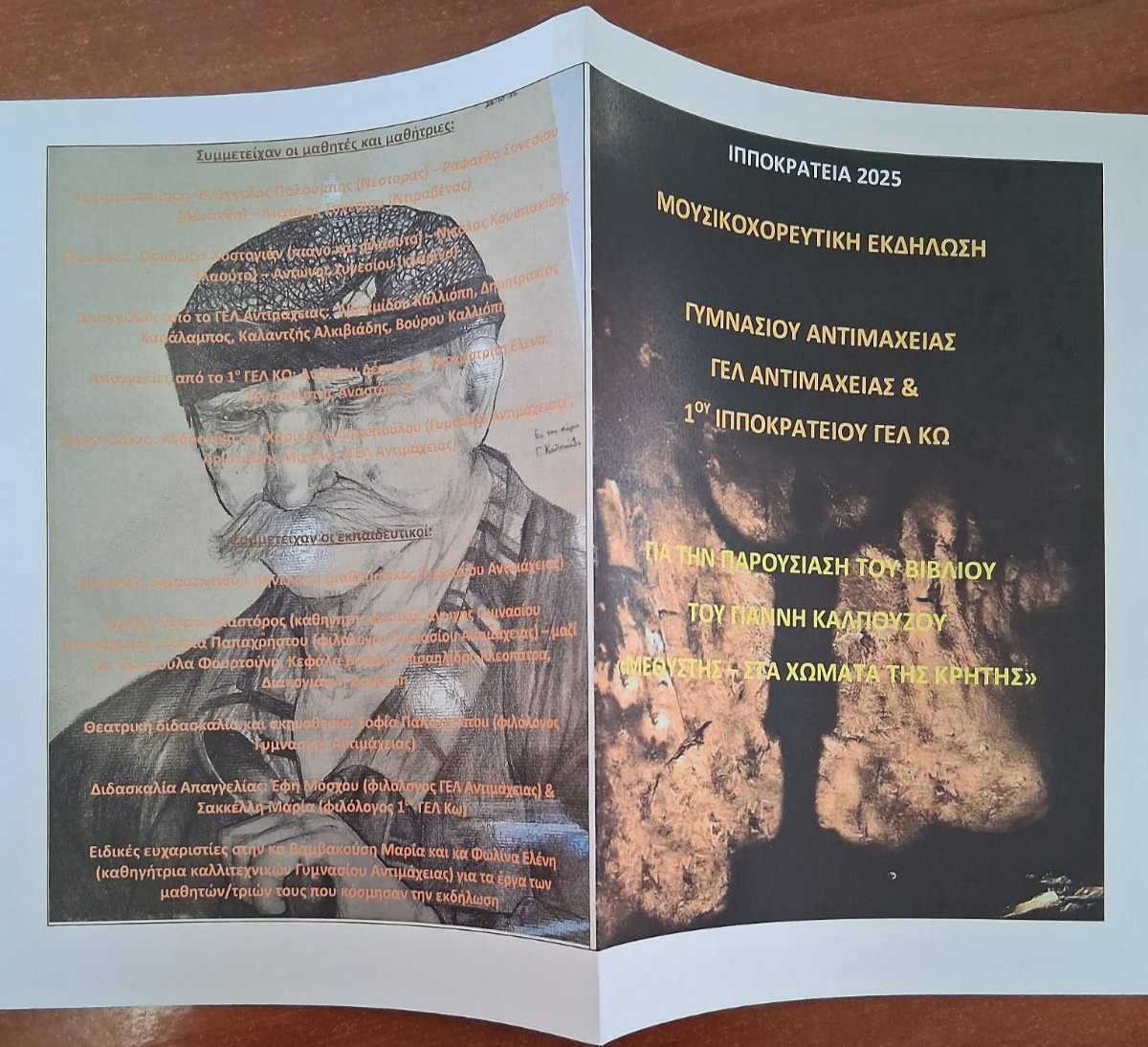 Το Γυμνάσιο Αντιμάχειας ευχαριστεί θερμά τον συγγραφέα, Γιάννη Καλπούζο, για την τιμή που μας έκανε να αποδεχτεί την πρόσκλησή μας και να παρουσιάσει στην εκδήλωσή μας το νέο του βιβλίο «Μεθυστής. Στα χώματα της Κρήτης», το Σάββατο 15/11/25, στα πλαίσια των «Ιπποκρατείων 2025».