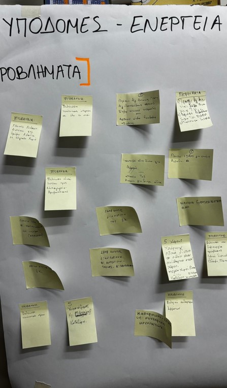 - αρχικά να αποτυπώσουν τις απόψεις τους σχετικά με τις σημερινές προκλήσεις και προβλήματα του νησιού στις υποδομές (ενέργεια, οδοποιία, τηλεπικοινωνίες, ύδατα και απόβλητα), το φυσικό και πολιτισμικό περιβάλλον, την επιχειρηματικότητα, τον ψηφιακό μετασχηματισμό και την ενδυνάμωση του ανθρώπινου δυναμικού