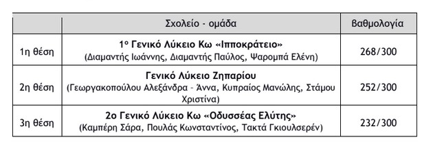 Η ομάδα του 1ου ΓΕΛ Κω «Ιπποκράτειο» που πρώτευσε, θα εκπροσωπήσει την