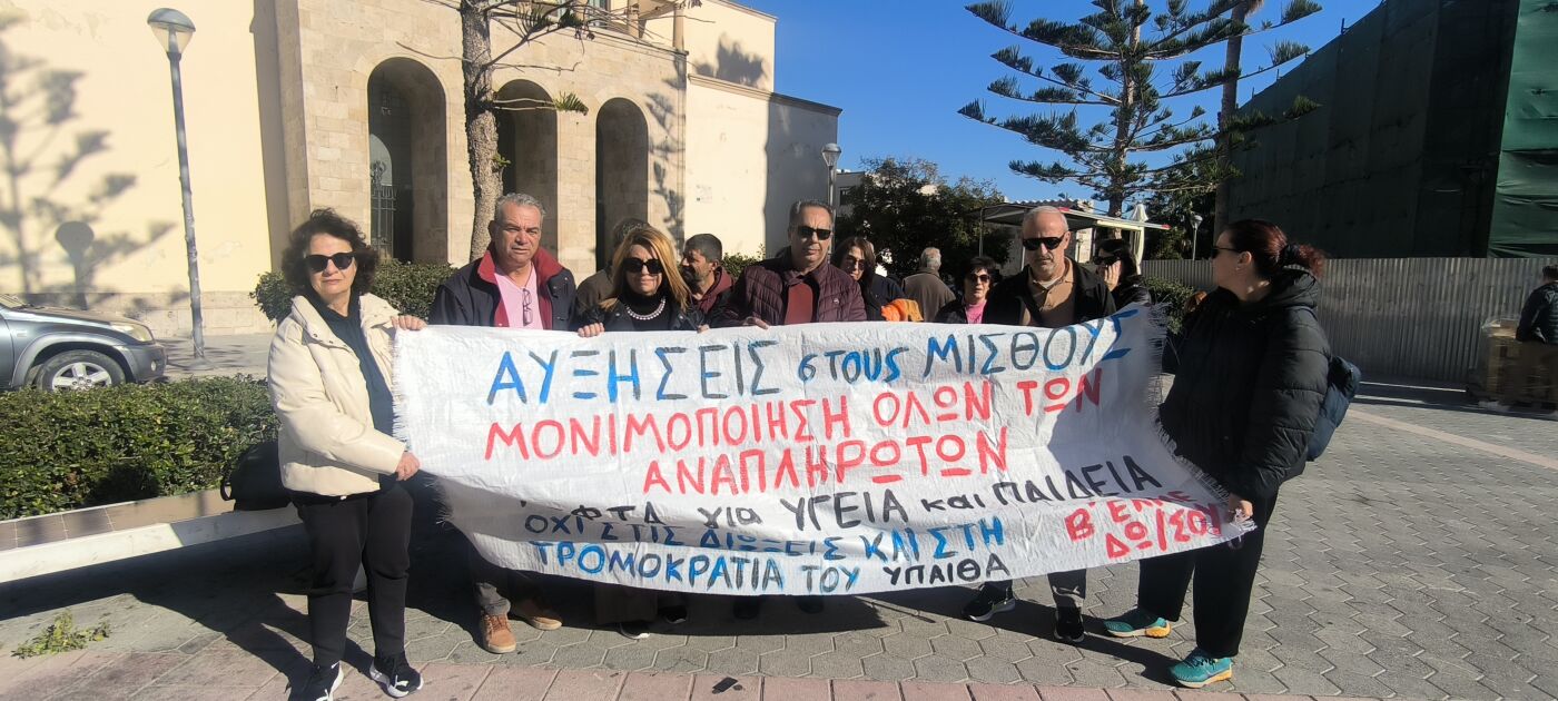Η εκπαιδευτικός Ευαγγελία Καμπουράκη μετέφερε την αγανάκτηση του κλάδου για τα διαχρονικά προβλήματα της σχολικής στέγης στο νησί, σημειώνοντας ότι οι γονείς αναγκάζονται να βάζουν «βαθιά το χέρι στην τσέπη». Παράλληλα, κατήγγειλε τις δικαστικές διώξεις εναντίον εκπαιδευτικών που συμμετείχαν σε απεργίες της ΟΛΜΕ, κάνοντας λόγο για προσπάθεια τρομοκράτησης όσων ονειρεύονται ένα σχολείο για όλα τα παιδιά.