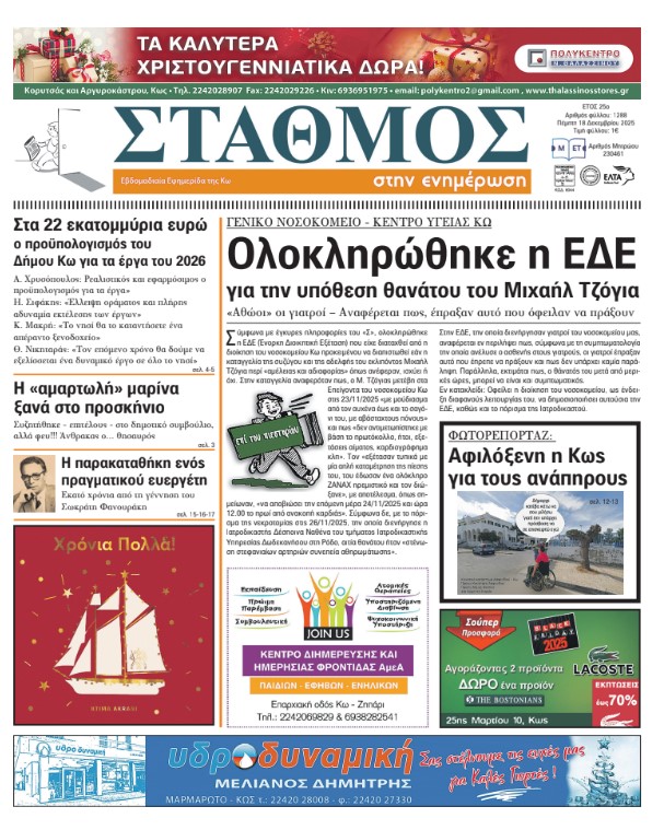 ΕιδήσειςΕν Δωδεκανήσω Το πρωτοσέλιδο της εφημερίδας ΣΤΑΘΜΟΣ Από aegeanews - 17 Δεκ 2025 0 45 Κοινοποίηση στο Facebook Μοιραστείτε στο X