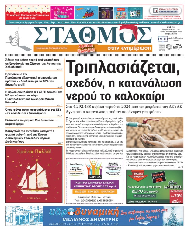 ΕιδήσειςΕν Δωδεκανήσω Το πρωτοσέλιδο της εφημερίδας ΣΤΑΘΜΟΣ Από aegeanews - 23 Δεκ 2025 0 8 Κοινοποίηση στο Facebook Μοιραστείτε στο X