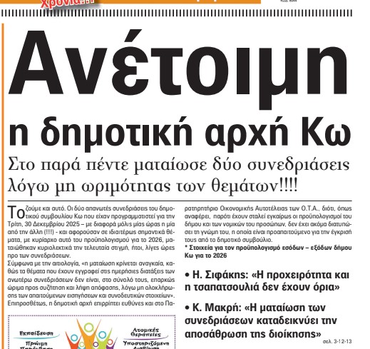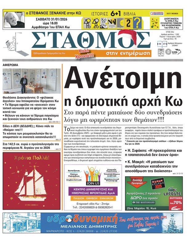 ΕιδήσειςΕν Δωδεκανήσω Το πρωτοσέλιδο της εφημερίδας ΣΤΑΘΜΟΣ Από aegeanews - 30 Δεκ 2025 0 26 Κοινοποίηση στο Facebook Μοιραστείτε στο X