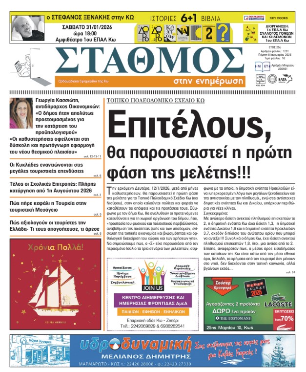 Το πρωτοσέλιδο της εφημερίδας ΣΤΑΘΜΟΣ