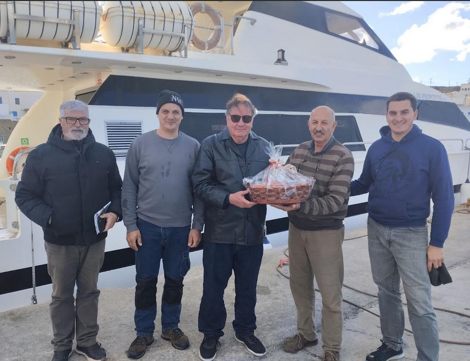 Τέλος την ίδια μέρα παραδόθηκε το εν λογω καλάθι με θερμές ευχές για καλή χρονιά, υγεία και ευημερία και στο πλήρωμα του σκάφους «KASOS PRINCESS » που εκτελεί το τοπικό Δρομολόγιο Κάσου – Καρπάθου και όχι μόνο .