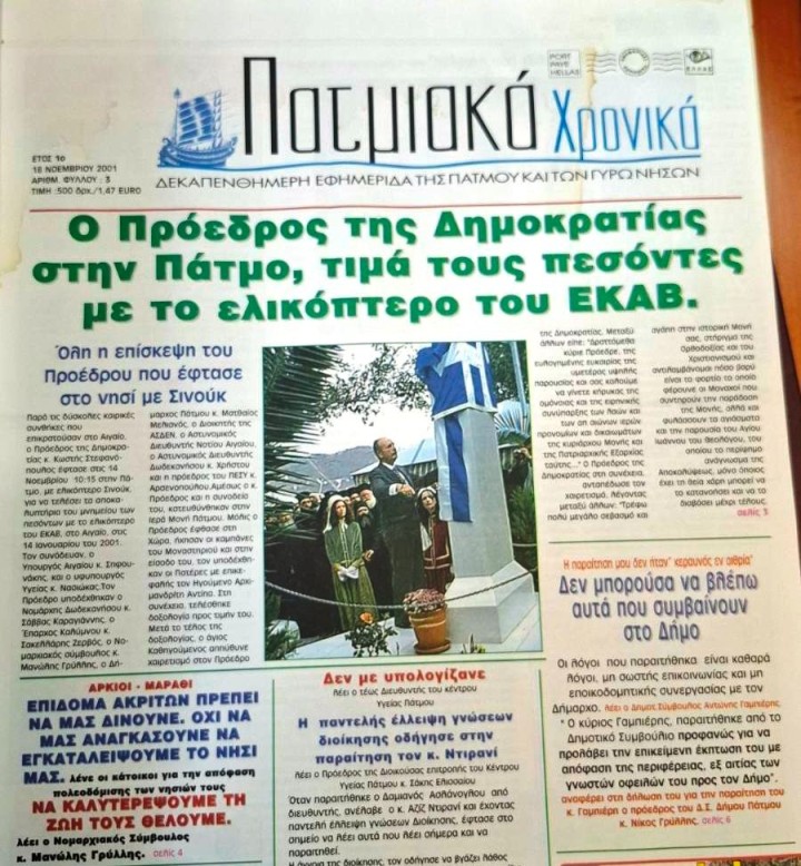 Φωτογραφία από το σχετικό ρεπορτάζ της έντυπης εφημερίδας μας το 2001 ΠΑΤΜΙΑΚΑ ΧΡΟΝΙΚΑ.