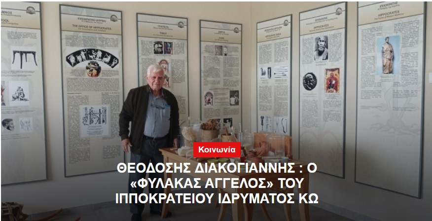 Αστείρευτη πηγή γνώσης της τοπικής λαογραφίας, της τοπικής ιστορίας και των ιδεών του πατέρα της ιατρικής Ιπποκράτη. Φιλομαθής και ακούραστος, αγωνιστής και οραματιστής. Ο λόγος για τον Θεοδόση Διακογιάννη, έναν άνθρωπο στον οποίο δίκαια ανήκει ο χαρακτηρισμός του «φύλακα άγγελου» του Διεθνούς Ιπποκρατείου Ιδρύματος Κω». Στη συνέντευξη που παραχώρησε στον «Σ», η οποία ομολογουμένως, αν και μεγάλη σε διάρκεια (περί τις τρεις και πλέον ώρες) ήταν απολαυστική, ένα «χάδι» στην ψυχή, μάς μιλά για τα παιδικά του χρόνια, για το πώς ξενιτεύτηκε και βρέθηκε από την Κω στο Κονγκό μέσω Ιταλίας, για τη ζωή του σε αυτή την αφρικανική χώρα, για την επιστροφή του στα πάτρια εδάφη, για την επαγγελματική του πορεία και βέβαια, για το πώς ξεκίνησε να ασχολείται με τον Ιπποκράτη και αφιέρωσε ένα μεγάλο μέρος της ζωής του στο Διεθνές Ιπποκράτειο Ίδρυμα, σε μια προσπάθεια να το καταστήσει «κτήμα» των συμπατριωτών του.