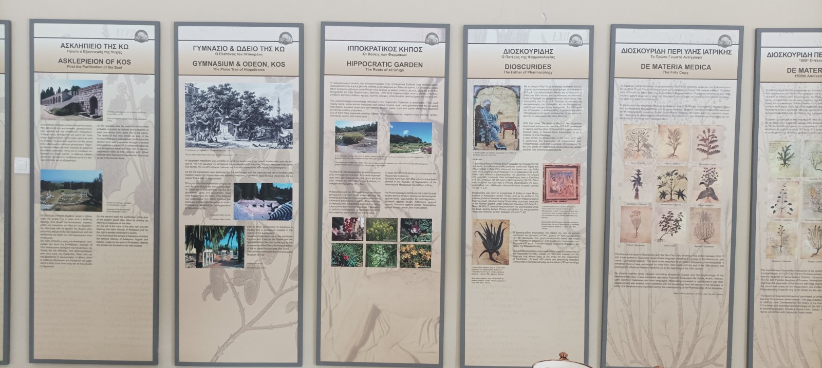 Θ.Δ.: Η ξενάγηση θα ξεκινήσει από τα βιβλία που σώζονται, εκδόσεων του 1620, και του 1657 που έγιναν στη Γενέβη και στη Φραγκφούρτη που τα έχουμε εδώ, θα τους εξηγήσουμε ότι μέσα σε αυτά βρίσκονται και τα 60 συγγράμματα του Ιπποκράτη, ότι με αυτά τα βιβλία η ιατρική διδασκόταν στα πανεπιστήμια της Ευρώπης επί 1000 χρόνια. Δεν υπήρχαν άλλα συγγράμματα ιατρικά. Από το 1000 που ιδρύθηκε το πρώτο πανεπιστήμιο στο Σαλέρνο της Ιταλίας και το δεύτερο μετά από 220 χρόνια στο Μονπελιέ της Γαλλίας, ύστερα έγινε του Παρισιού, της Μάντοβα και τα άλλα πανεπιστήμια στην Ευρώπη. Όλα αυτά τα πανεπιστήμια δίδασκαν την ιατρική από τα βιβλία του Ιπποκράτη και του Γαληνού. Μετά τα βιβλία θα δούνε το φαρμακείο του Ιπποκράτη με τα 200 βότανα από τα 243 που αναφέρονται στην Ιπποκρατική Γραμματεία. Μετά θα τους πάμε στο ιατρείο, το οποίο έχει εργαλεία, πρακτικές και όργανα διάφορα του ιατρείου όπως ήταν την Ιπποκρατική εποχή. Μετά θα πάμε στο μουσείο το οποίο έχει τους πίνακες, που από την αρχή μέχρι το τέλος κάποιος μπορεί να πάρει μια ιδέα για την αρχαία ελληνική ιατρική. Έχει αγάλματα, ανάγλυφα, βάζα κ.λ.π. που έχουν σχέση με την υγεία του ανθρώπου και με τη θεραπεία των ασθενειών. Μετά από το μουσείο έχουμε τον βοτανικό κήπο, ο οποίος έχει ένα σωρό περιπέτειες. Ξεκίνησε με δύο Γερμανούς βοτανολόγους. Ο κήπος αρχικά, ήταν γεμάτος με κλαδιά και με τα βότανα που υπήρχαν τότε. Μέσα σε αυτό το πρωτόγονο περιβάλλον, με ενέργειες του Σπύρου Μερκούρη, καθαρίστηκαν από τα κλαδιά ορισμένα μέρη, φτιάχτηκαν παρτεράκια και φυτεύτηκαν τα πρώτα βότανα, πάντα ιπποκρατικά βότανα. Αφού έγινε όλη αυτή η διαδικασία, ήρθε μια βοτανολόγος από την apivita και εμπλούτισε με λίγα βότανα τον κήπο. Από εκεί και ύστερα, ανέλαβαν κάποιοι ξενοδόχοι τη συντήρησή του. Το γκρούπ Κουλλιάς, που έκανε ένα καινούριο σχέδιο με παρτέρια από πέτρες. Τώρα έχει αναλάβει το IKOS να ξαναφτιάξει από την αρχή τον κήπο. Πριν λίγες ημέρες με επισκέφθηκαν τρεις άνθρωποι της εταιρείας IKOS από την Αθήνα να εξετάσουν τους χώρους, να δουν τι μπορούν να κάνουν. Να σου πω ότι, ο κήπος βρίσκεται σε καλή κατάσταση και πιστεύω ότι, θα γίνει μια πολύ σωστή σοβαρή δουλειά για να μπει ο Ιπποκρατικός Κήπος της Κω σε έναν παγκόσμιο σχεδιασμό βοτανικών κήπων.