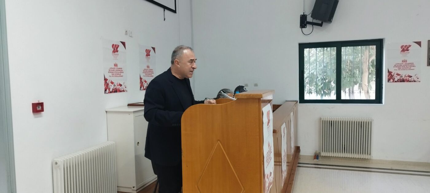 Βασικός ομιλητής της συγκέντρωσης ήταν ο βουλευτής του ΚΚΕ και Αντισυνταγματάρχης ε.α., Νίκος Παπαναστάσης, ο οποίος ανέλυσε τις τρέχουσες διεθνείς και εγχώριες εξελίξεις. Ο κ. Παπαναστάσης στάθηκε ιδιαίτερα στους κινδύνους που ελλοχεύουν από την εμπλοκή της χώρας στους ιμπεριαλιστικούς σχεδιασμούς και τους πολέμους που μαίνονται στην ευρύτερη περιοχή, υπογραμμίζοντας την ανάγκη για επαγρύπνηση και λαϊκή κινητοποίηση.