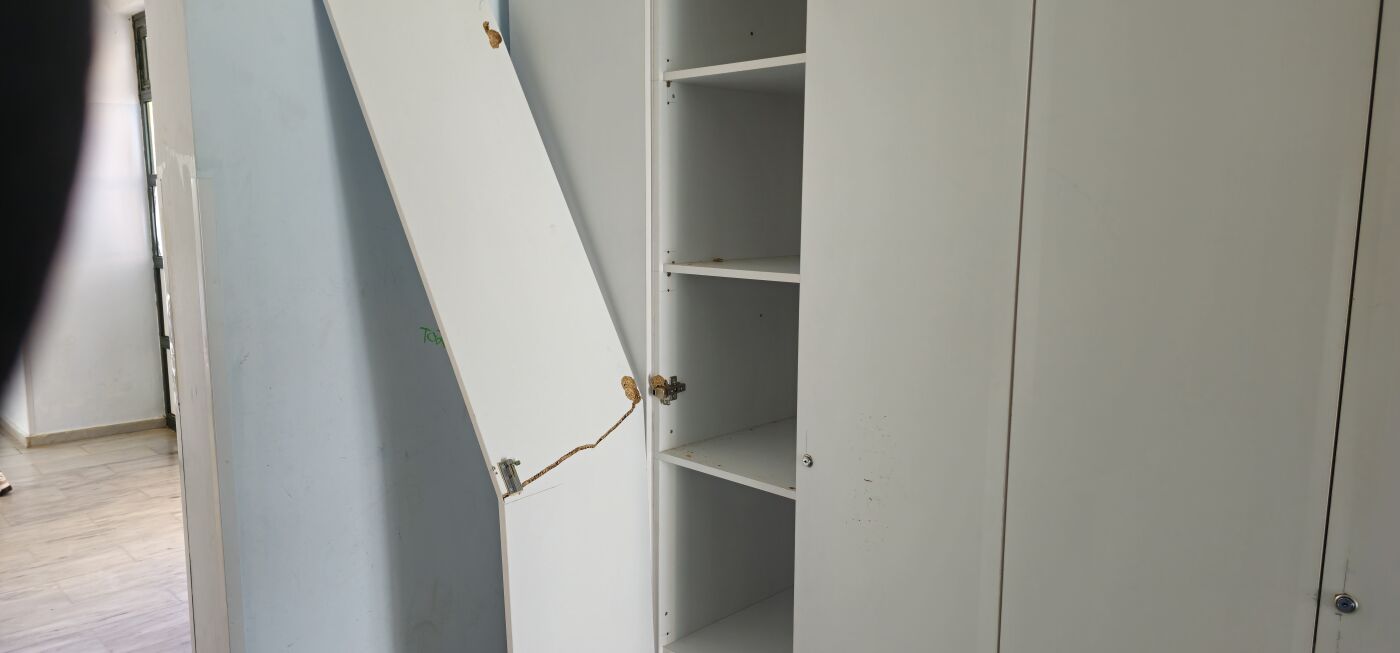 Παράλληλα, καταγράφηκαν και άλλες ζημιές, όπως σπασμένη ντουλάπα σε διάδρομο, εξαφανισμένες ή κατεστραμμένες κλειδαριές, καθώς και παράθυρα που είχαν αφεθεί ανοιχτά,