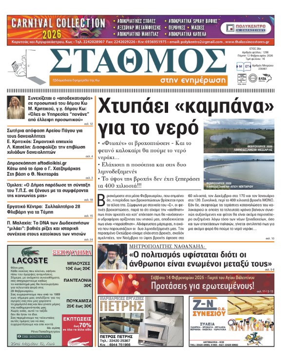 ΕιδήσειςΕν Δωδεκανήσω Το πρωτοσέλιδο της εφημερίδας ΣΤΑΘΜΟΣ Από aegeanews - 11 Φεβ 2026 0 5 Κοινοποίηση στο Facebook Μοιραστείτε στο X