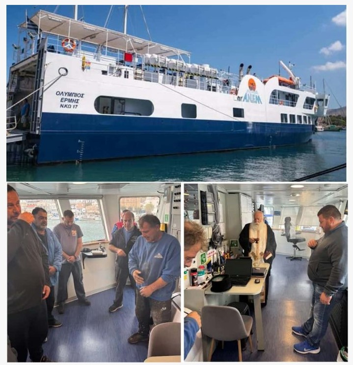 Σήμερα, Παρασκευή 13 Φεβρουαρίου 2026, στη γέφυρα του πλοίου τελέστηκε ο καθιερωμένος αγιασμός, παρουσία του καπετάνιου και του πληρώματος. Την ακολουθία τέλεσε ο π. Τίτος Καμπούρης, ευλογώντας το πλοίο και το πλήρωμα του για ασφαλή ταξίδια.
