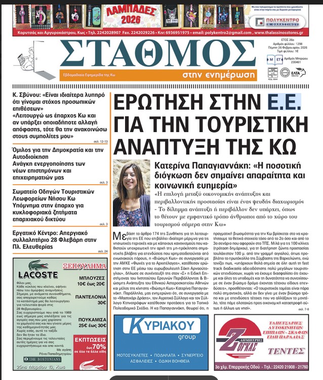 ΕιδήσειςΕν Δωδεκανήσω Το πρωτοσέλιδο της εφημερίδας ΣΤΑΘΜΟΣ Από aegeanews - 25 Φεβ 2026 0 6 Κοινοποίηση στο Facebook Μοιραστείτε στο X