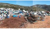 Η κάμερα κινείται αργά, αποτυπώνοντας το εύρος της έκτασης που έχει καλυφθεί από σκουπίδια, δίνοντας μια σαφή εικόνα της συσσώρευσης που έχει προκύψει από τη μακροχρόνια αδυναμία αποκομιδής. Δεν πρόκειται για μεμονωμένα απορρίμματα, αλλά για μια διαρκώς επεκτεινόμενη χωματερή, που αλλοιώνει το φυσικό τοπίο ενός μικρού και ευαίσθητου νησιωτικού περιβάλλοντος.