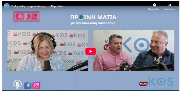 Στο Ράδιο Κως μίλησαν οι Μηνάς Χατζημιχαήλ Αντιπρόεδρος της Ένωσης Ξενοδόχων Κω και ο Διευθυντής Βιώσιμης Τουριστικής Ανάπτυξης του ΚΩΑΝ Νίκος Σοφός αναφορικά με την συμμετοχή του Δήμου Κω, μέσω του ΚΩΑΝ, στην Διεθνή Έκθεση Τουρισμού ΙΤΒ στο Βερολίνο.