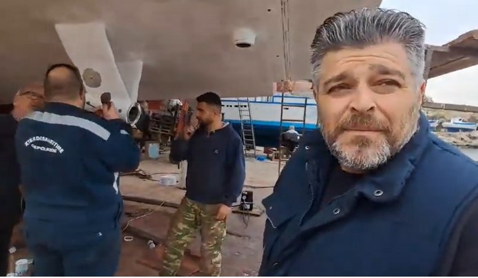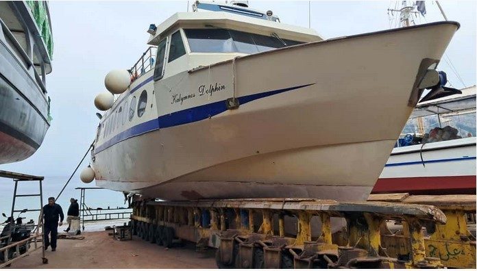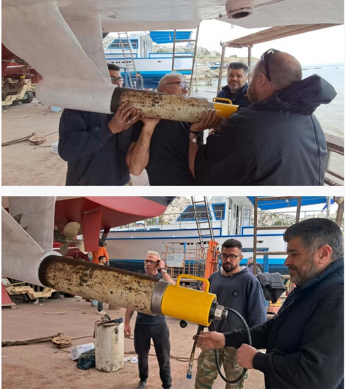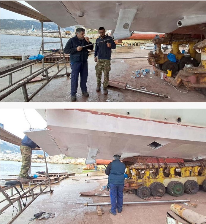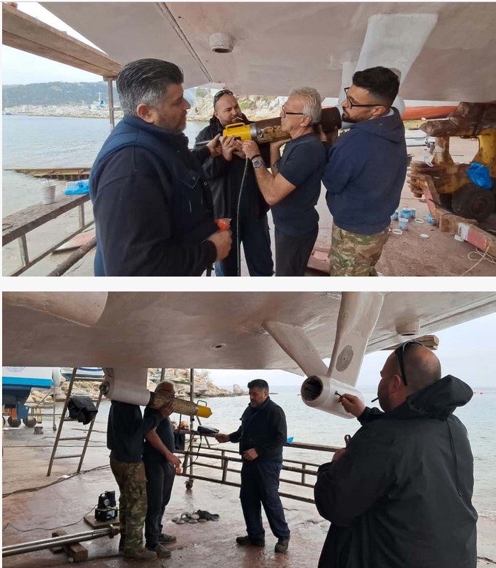 Το πρωί της Τρίτης 17 Μαρτίου 2026, ο φακός του Kalymnos News βρέθηκε στο σημείο, όπου ο καπετάνιος του σκάφους, Σπύρος Βαρβαρής, μαζί με το τοπικό συνεργείο του Παναγιώτη Φρατζέσκου πραγματοποιούσαν εργασίες στους άξονες του πλοίου.