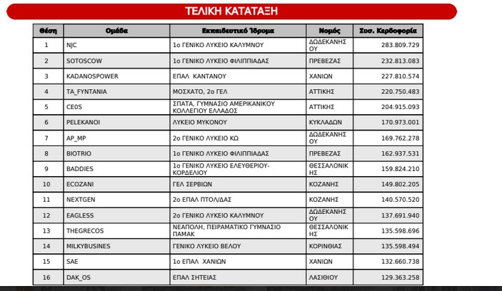 Η ομάδα NJC του 1ου Γενικού Λυκείου Καλύμνου κατέκτησε την 1η θέση Πανελλαδικά, σημειώνοντας εντυπωσιακή συνολική κερδοφορία: ➡ 283.809.729 με διαφορά σχεδόν 50.000.000 από τη δεύτερη ομάδα.