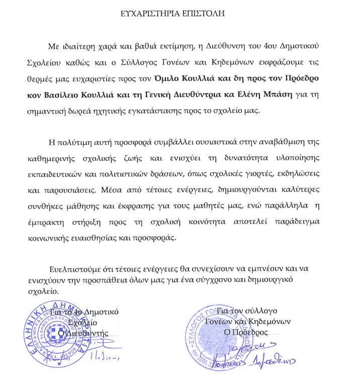 ΕιδήσειςΕν Δωδεκανήσω Ευχαριστήριο του 4ου Δημοτικού Σχολείου Κω στον Όμιλο Κουλλιά Από aegeanews - 1 Απρ 2026 0 28 Κοινοποίηση στο Facebook Μοιραστείτε στο X