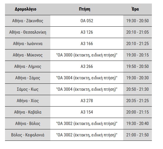 | ΑΡΙΘΜΟΣ ΠΤΗΣΗΣ | ΔΡΟΜΟΛΟΓΙΟ | ΩΡΑ |