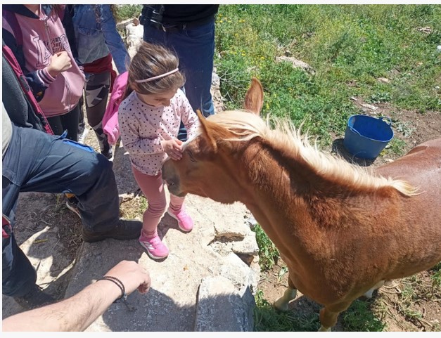 Συντροφιά μας είχαμε την Κέλλυ, ένα νεαρό θηλυκό άλογο, που έβοσκε στο λιβάδι και αναζητούσε την παρέα μας.