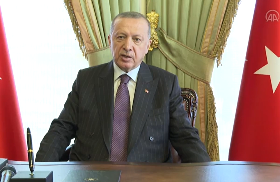 Η κλήση τελειώνει με ένα ικανοποιημένο Ερντογάν να κοιτάζει στα δεξιά του για κάποιον που θα κλείσει την σύνδεση της βιντεοκλήσης.