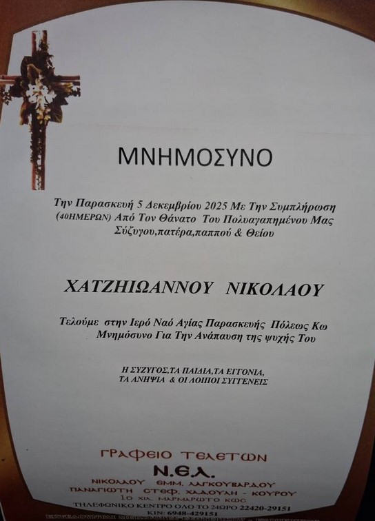 ΕιδήσειςΦήμες Αναγγελία μνημοσύνου Νίκου Χατζηιωάννου Από aegeanews - 3 Δεκ 2025 0 25 Κοινοποίηση στο Facebook Μοιραστείτε στο X
