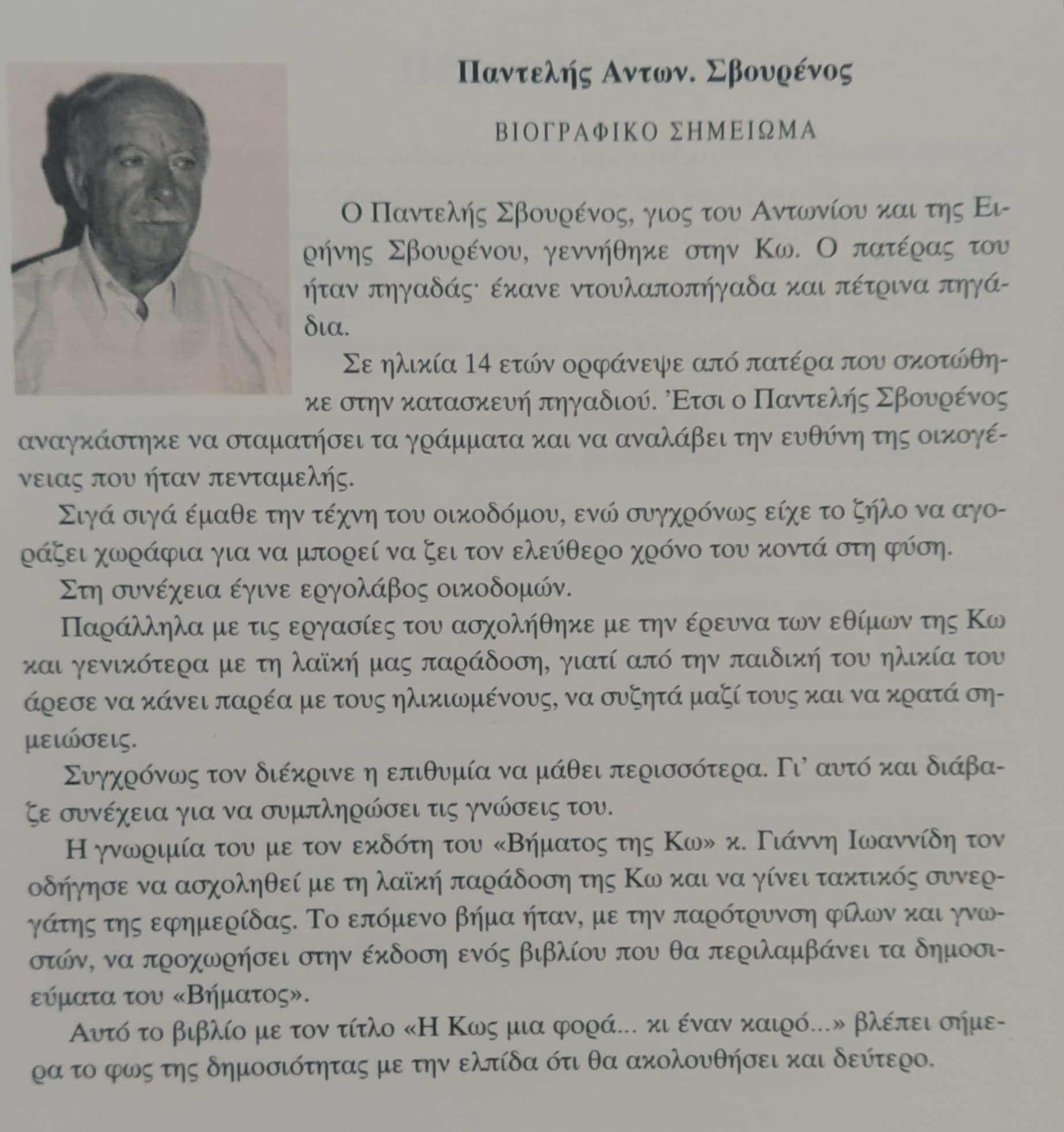 Στην συνέχεια με παρότρυνση φίλων του φιλολόγων και ανθρώπων των γραμμάτων, προχώρησε και στην έκδοση σχετικών βιβλίων «Η Κως μια φορά και έναν καιρό».
