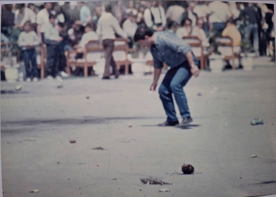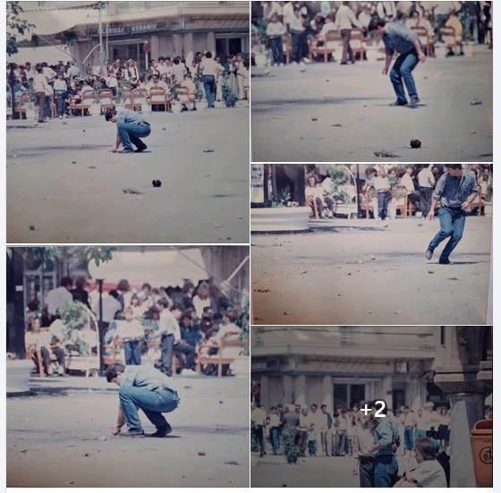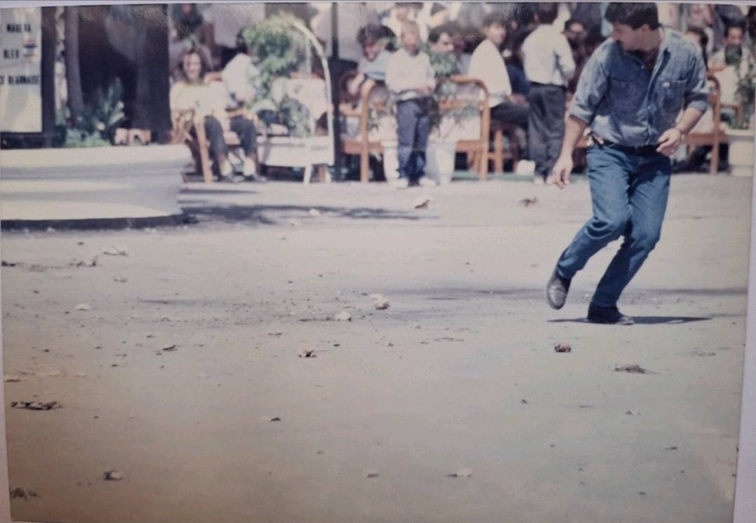 Φαίνομαι να τοποθετώ στην μέση της Πλατείας Ελευθερίας στην Κω, αυτοσχέδιο πυροτέχνημα (βαρελότο) καρέ-καρέ και να το παρακολουθώ με τον αδελφό μου Αντώνη να εκρύγνειται. Εκείνη την εποχή το τοπικό έθιμο ήταν να μαζευόμαστε το μεσημέρι της Κυριακής της Ανάστασης και να κάνουμε διαγωνισμό βαρελότων, ποιό θα κάνει την μεγαλύτερη έκρηξη!!