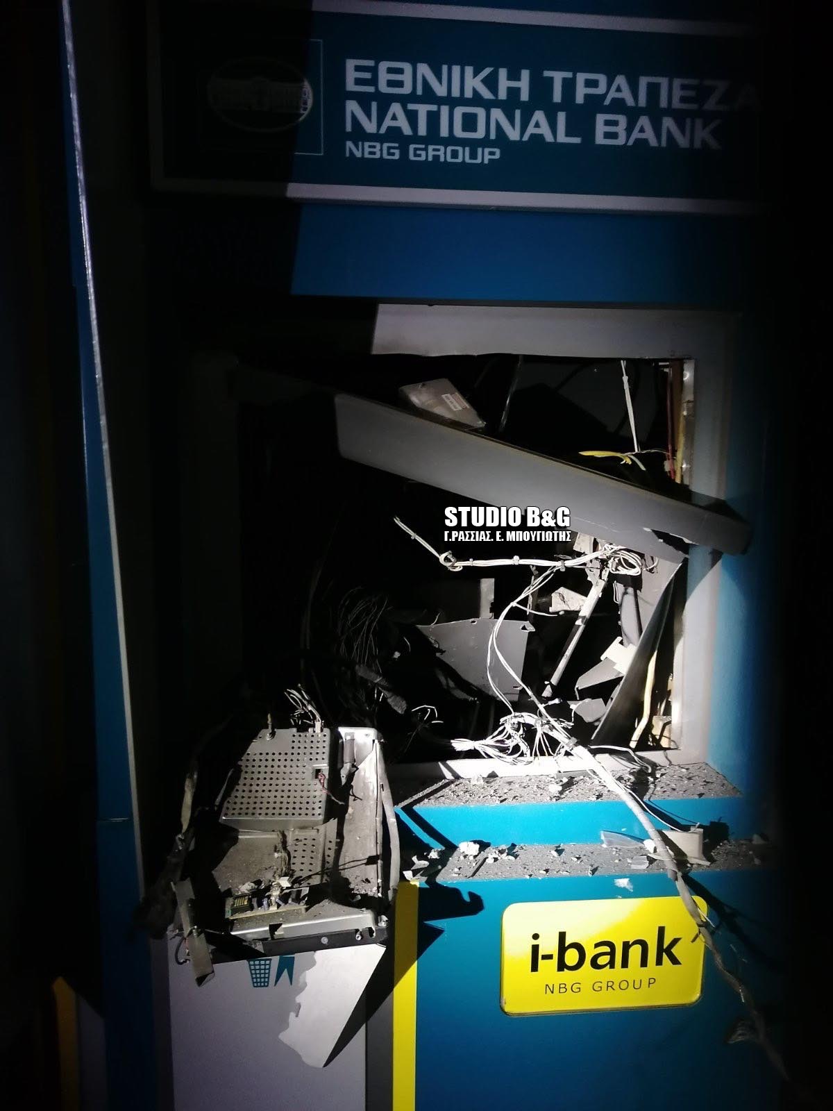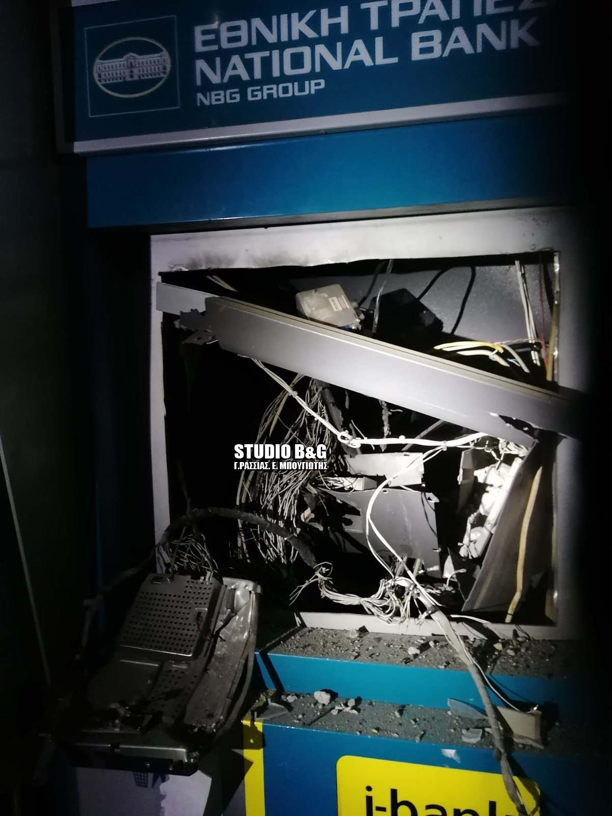 Άγνωστοι δράστες έδρασαν ανενόχλητοι και ανατίναξαν την νύχτα της Τρίτης ξημερώματα Τετάρτης 21 Απριλίου στην Παλαιά Επίδαυρο Αργολίδας το ΑΤΜ της Εθνικής Τράπεζας.