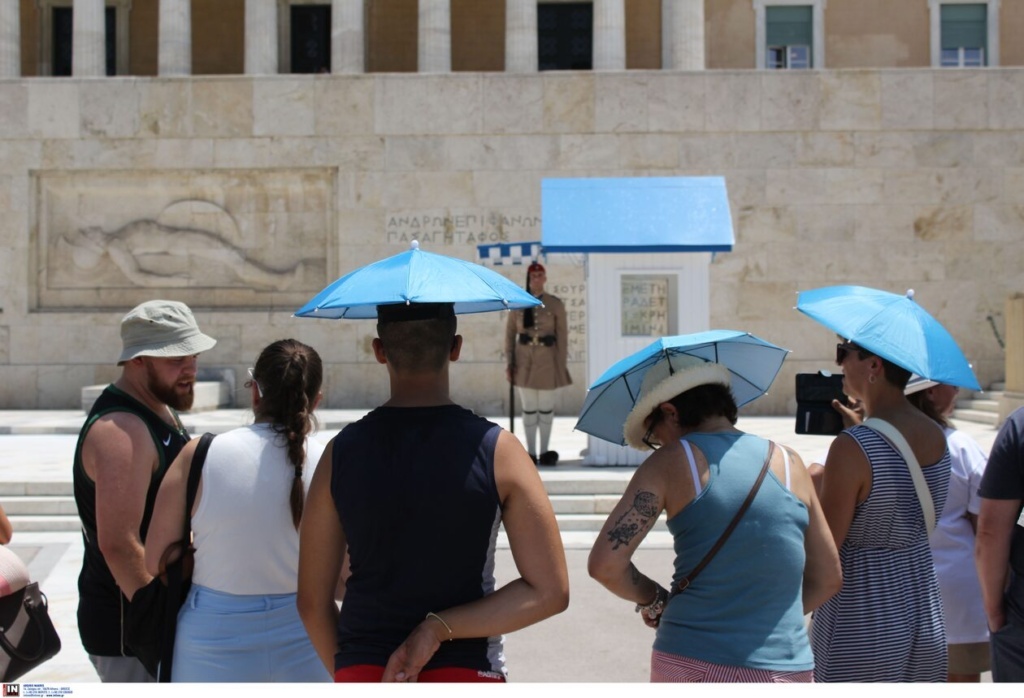 Δεν ήταν λίγοι μάλιστα οι τουρίστες που πήγαν και σήμερα παρά τις τόσο υψηλές θερμοκρασίες μπροστά στη Βουλή για να φωτογραφίσουν τους εύζωνες.