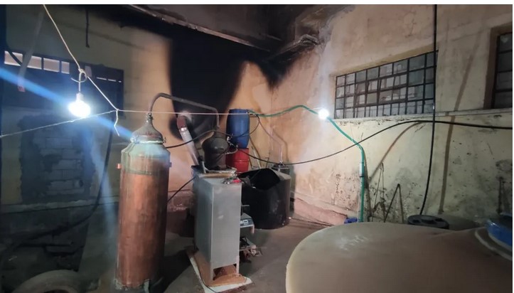 Όπως προέκυψε, ο κατηγορούμενος έχοντας προχωρήσει σε προσχηματική μίσθωση κλειστού χώρου ελαιουργείου, είχε εγκαταστήσει και λειτουργούσε σε αυτόν πλήρη μονάδα παραγωγής αλκοολούχου ποτού (αποστακτήριο), μέσω της οποίας προέβαινε τακτικά σε απόσταξη – παρασκευή μεγάλης ποσότητας αλκοολούχου ποτού, στερούμενος παντελώς προβλεπόμενης άδειας από την αρμόδια Αρχή.