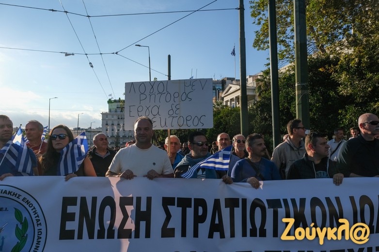 Σε εξέλιξη βρίσκεται από τις 4 το απόγευμα του Σαββάτου (11/10) η πανελλαδική συγκέντρωση εν ενεργεία και απόστρατων στελεχών των Ενόπλων Δυνάμεων στο κέντρο της Αθήνας, με σημείο συνάντησης την Παλιά Βουλή, οι οποίοι διαμαρτύρονται για το νέο νομοσχέδιο του Υπουργείου Εθνικής Άμυνας.