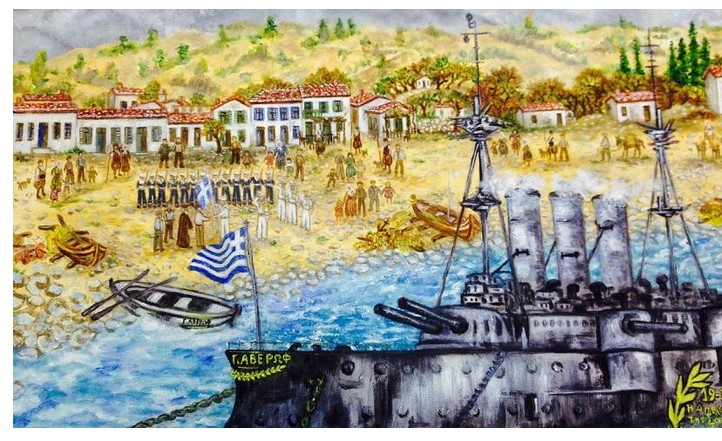 Ήταν Οκτώβριος του 1912, όταν παράλληλα με τον ελληνικό στρατό ο οποίος απελευθέρωνε την μία μετά την άλλη τις πόλεις καθώς και την πρωτεύουσα της Μακεδονίας, το Πολεμικό μας Ναυτικό, «μεθ’ ὁρμῆς ἀκαθέκτου», υπό τον Ναύαρχο Παύλο Κουντουριώτη, απελευθέρωνε μετά από σχεδόν εξακόσια χρόνια το Αιγαίο (πλην Δωδεκανήσου) και καθιστούσε αδιαμφισβήτητη την ελληνική εθνική κυριαρχία. Μάλιστα μετά την 8η Οκτωβρίου 1912 και την απελευθέρωση της Λήμνου, το στρατηγικής σημασίας λιμάνι του νησιού στο Μούδρο έγινε το ορμητήριο του ελληνικού στόλου, ο οποίος σε σχηματισμό τριών μοιρών, κατευθύνθηκε για την απελευθέρωση των νησιών του Αιγαίου :