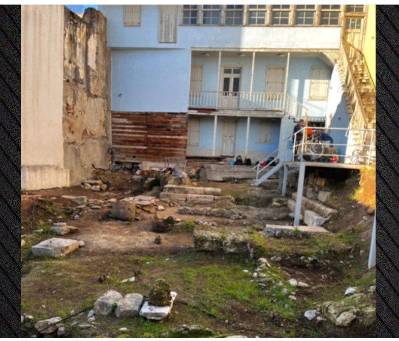 Στον αύλειο χώρο και στο ισόγειο της διατηρητέας οικίας ήλθαν στο φως, κατά τις ανασκαφικές εργασίες της περιόδου 2000-2003, αρχαία κατάλοιπα που χρονολογούνται από την κλασική έως τη βυζαντινή εποχή.