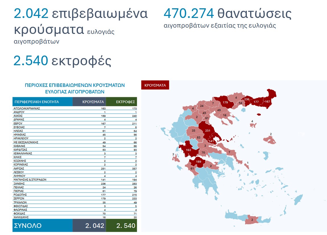 Τα στοιχεία για την πορεία της ευλογιάς επικαιροποιούνται διαρκώς, με βάση την αποστολή των τελικών δεδομένων από τις Περιφερειακές Ενότητες, και θα δημοσιοποιούνται τακτικά από το ΥΠΑΑΤ για την πλήρη και έγκυρη ενημέρωση των παραγωγών και της κοινής γνώμης. όπως αναλύθηκε στο airetos.gr