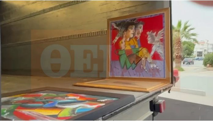 Βίντεο του protothema.gr από τη Γλυφάδα κατέγραψε τη στιγμή που αστυνομικοί άδειασαν τη γκαλερί και μετέφεραν τα εκθέματα σε μεγάλο φορτηγό.