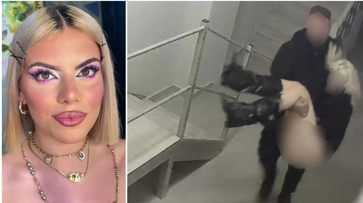 Σε άλλο βίντεο από την κάμερα ασφαλείας, η 19χρονη φαίνεται, νωρίτερα, να φτάνει στο ξενοδοχείο στις 00:27 τα ξημερώματα της 14ης Απριλίου και μαζί με έναν άνδρα που φοράει γκρι ζακέτα ανεβαίνουν τις σκάλες.