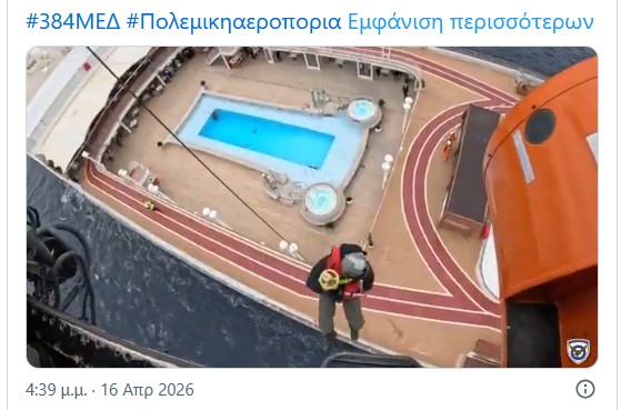 72χρονος υπέστη καρδιακό επεισόδιο σε κρουαζιερόπλοιο – Βίντεο από την αεροδιακομιδή με Super Puma της ΠΑ