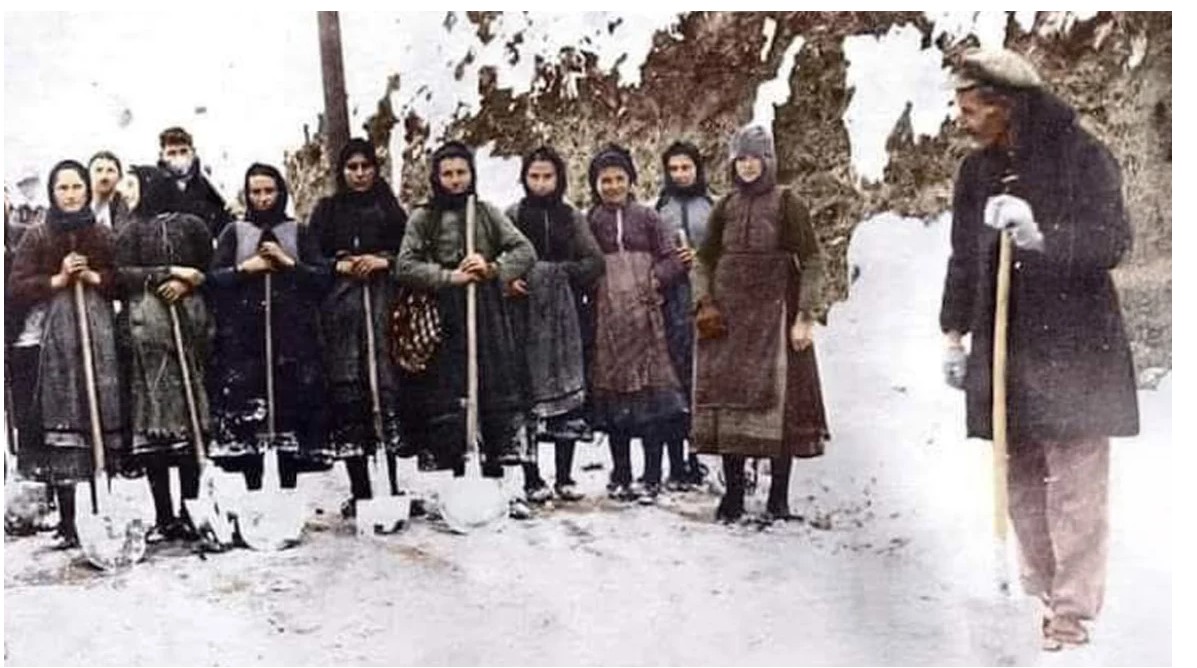 Αυτές οι φωτογραφίες προβάλλονται με τη λεζάντα πάντα «Οι γυναίκες της Πίνδου» και «Κάπου στο μέτωπο».