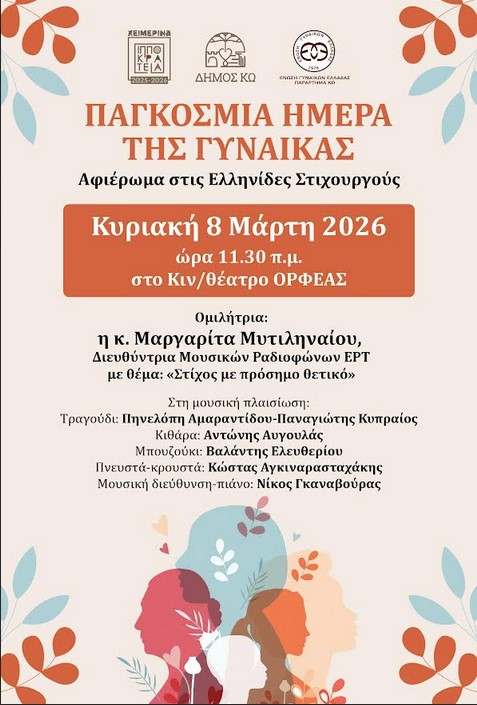 Αφιέρωμα στην γυναίκες στιχουργούς σε συνεργασία με ΕΓΕ Κω, Κυριακή 11:30 στον Ορφέα