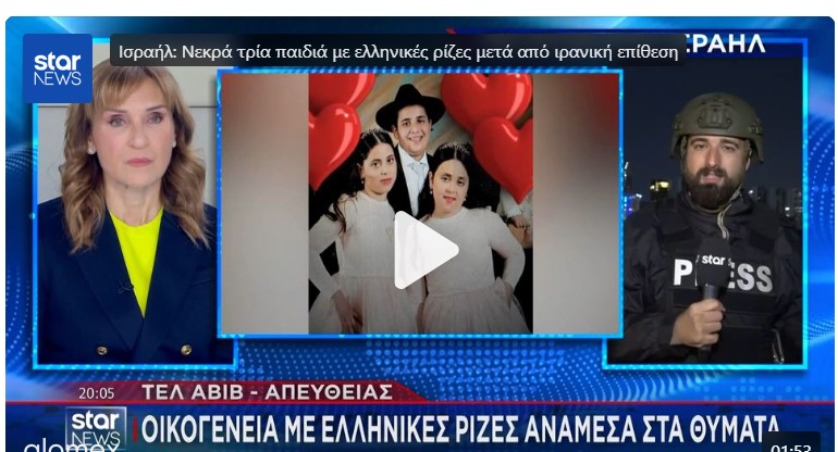 Τρία παιδιά με ρίζες από τη Θεσσαλονίκη είναι ανάμεσα στα θύματα των ιρανικών επιθέσεων στο Ισραήλ και συγκεκριμένα στην πόλη Μπετ Σεμές.