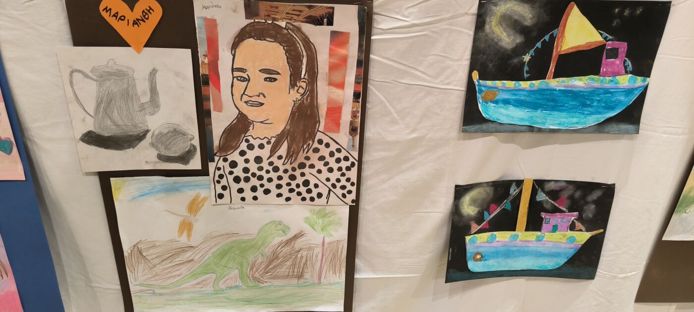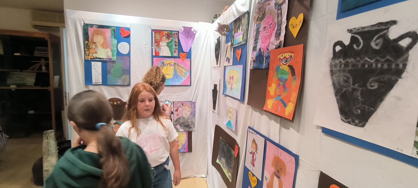 Γονείς και παππούδες είχαν την ευκαιρία να περιηγηθούν σε έναν κόσμο γεμάτο φαντασία, μέσα από τα έργα των παιδιών που συμμετείχαν στα χειμερινά εργαστήρια ζωγραφικής του Συλλόγου, υπό την καθοδήγηση της Lise-Lotte Iversen.