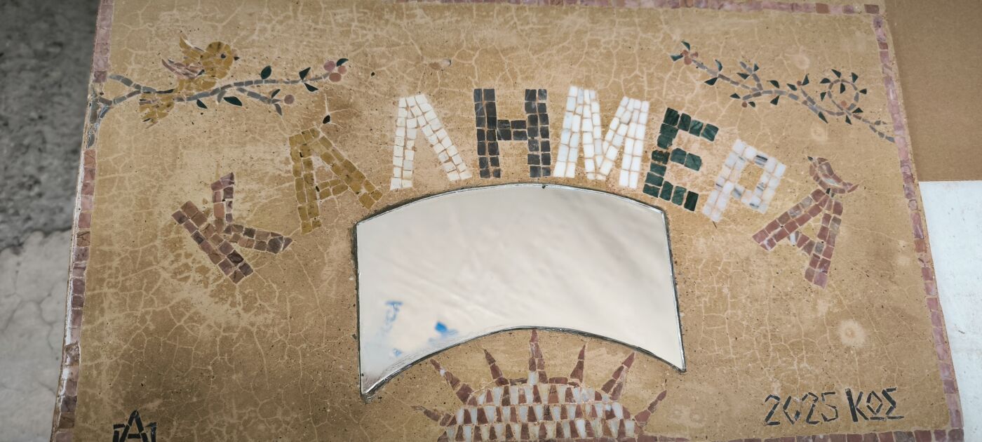 Μαθαίνοντας την τέχνη του ψηφιδωτού στο εργαστήριο του Δαυίδ Χατζηδαυίδ με τους μαθητές του 6ου Δημοτικού σχολείου Κω