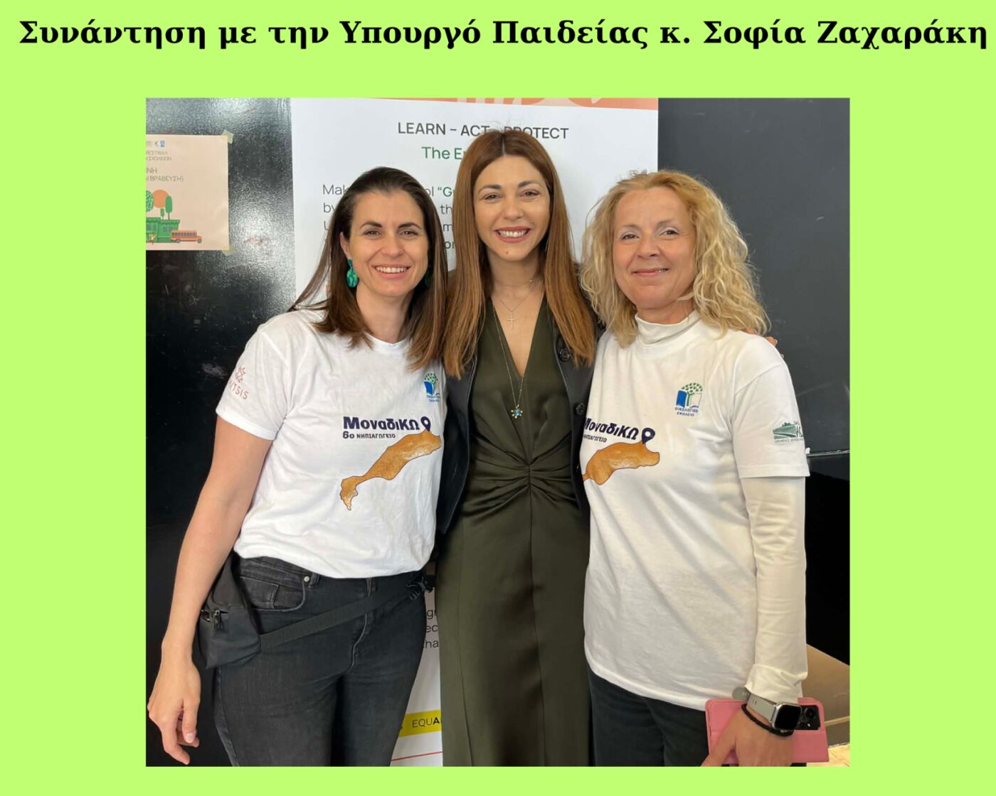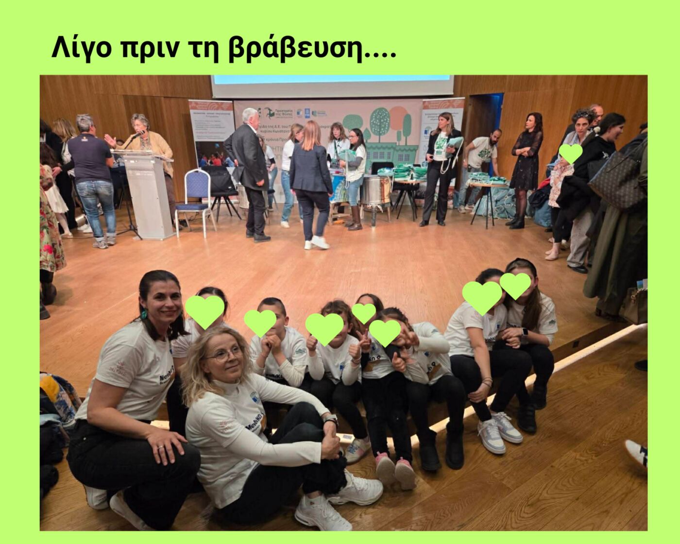 Παράλληλα, πολύτιμη υπήρξε και η συμβολή τουΣυλλόγουΓονέωνκαιΚηδεμόνων, που στήριξε ενεργά αυτήν την προσπάθεια τυπώνοντας τα μπλουζάκια που φορούσαν στη βράβευση τα παιδιά και οι δασκάλες καθώς και την εξασφάλιση μεταφορικού μέσου στην Αθήνα.