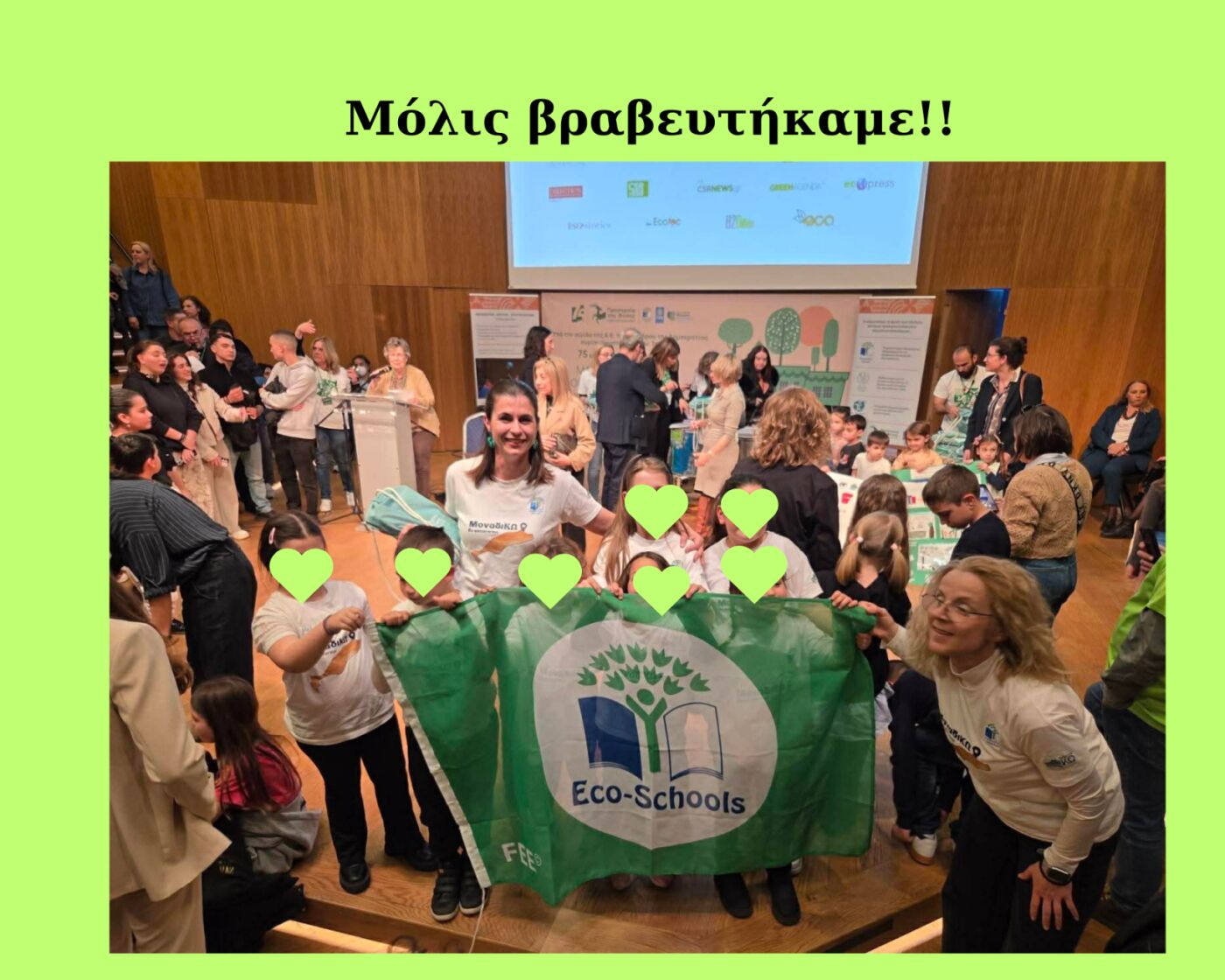 Ιδιαίτερη στιγμή της εκδήλωσης αποτέλεσε η βράβευση σχολείων που διακρίθηκαν για τις περιβαλλοντικές τους δράσεις. Ανάμεσα σε αυτά, ξεχώρισε και η συμμετοχή του 6ου ΝηπιαγωγείουΚω, το οποίο παρέλαβε την Πράσινη Σημαία των Οικολογικών Σχολείων — μια