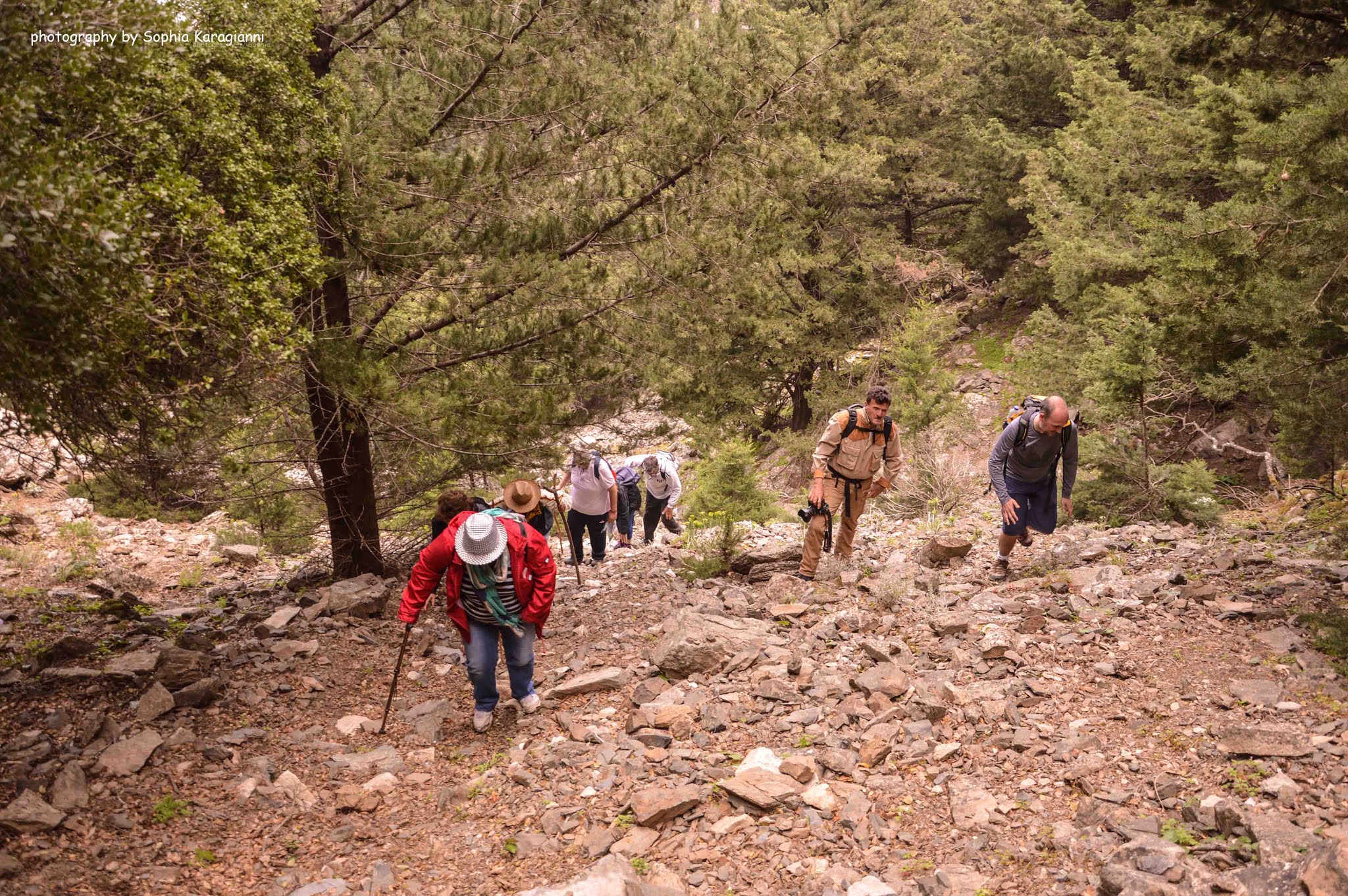 οι πεζοπόροι βλέπουν από μακριά την Πλακερή και «ζυγίζουν» τη δυσκολία της